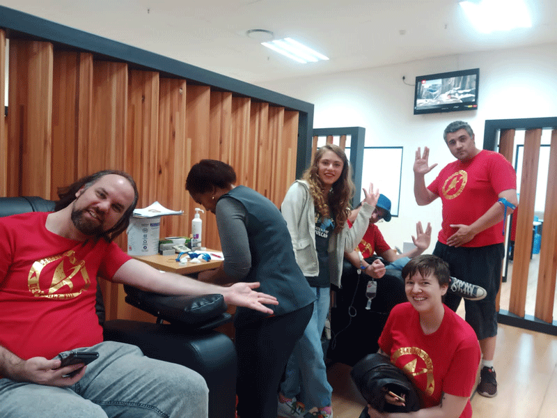 Adult DS8 team members donate blood on a SANBS-approved cadence. We even have an award for fastest doner at the event. We meet before the donation to eat a hearty breakfast at a kid-approved restaurant. The whole family gets involved.